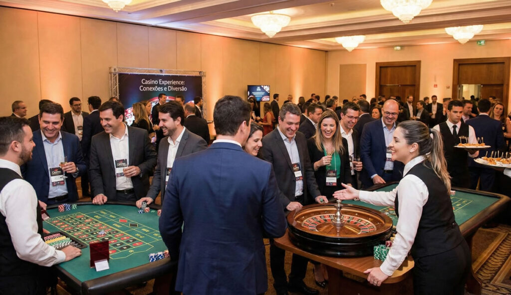 Uma Festa Cassino para Networking é uma oportunidade de branding massiva. Pense além do banner na entrada.